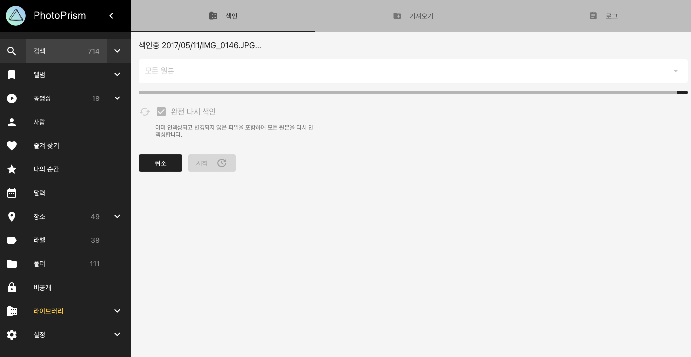 myPhoto 폴더에 저장된 사진을 이동없이 PhotoPrism에 인덱싱을 시도.